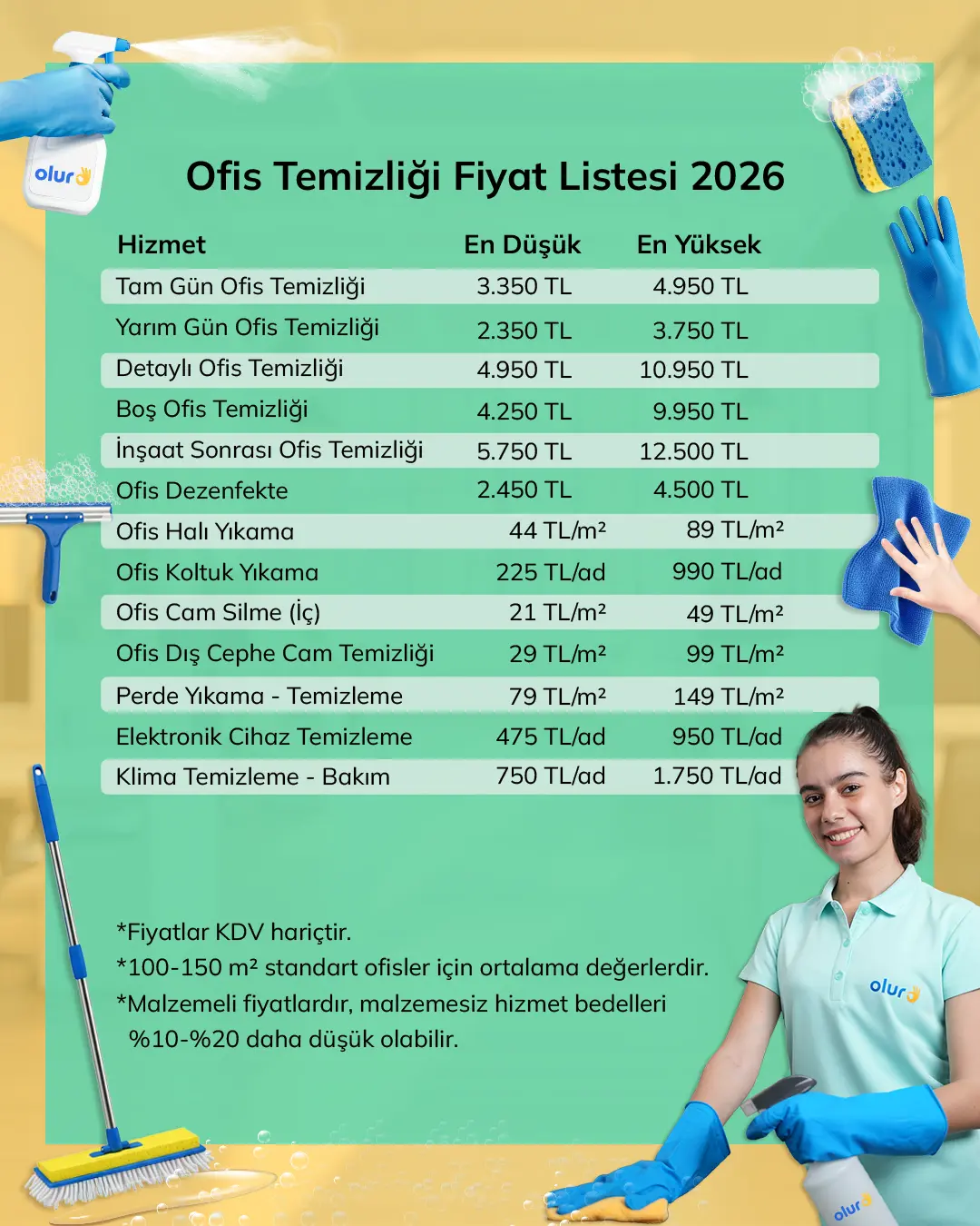 2026 Ofis temizliği fiyatları sayfasından tüm detaylara ulaşabilirsiniz.